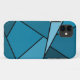 Inspired by stained glass, this stylish geometric design contains polygons in various shades of teal outlined in black. A pale blue-green triangle slashes in from the upper right with an array of progressively darker teal quadrangles and other shapes spiralling around it from light to dark. Two dark greenish-blue shapes ground the left side of the original design.