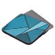 Inspired by stained glass, this stylish geometric design contains polygons in various shades of teal outlined in black. A pale blue-green triangle slashes in from the upper right with an array of progressively darker teal quadrangles and other shapes spiralling around it from light to dark. Two dark greenish-blue shapes ground the left side of the original design.