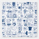 This abstract design features a complex pattern of hand-drawn doodles, resembling a blueprint or technical schematics. Intricate lines, shapes, and machine-like symbols come together in a chaotic yet cohesive flow, perfect for lovers of industrial or futuristic art. The navy blue sketches on a light background create a visually engaging contrast, offering a modern, tech-inspired aesthetic.