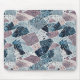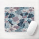 Contemporary background featuring an abstract terrazzo pattern in navy blue, light blue, and mauve pink