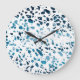 Abstract Terrazzo Mosaic Navy & Light Blue Pattern Large Clock