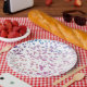 Abstract Terrazzo Mosaic Pink & Blue Pattern Paper Plate