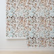 Abstract Terrazzo Mosaic Rust Brown & Blue Pattern Wallpaper