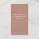 A beautiful but professional vertical business card, featuring a terracotta/dusky pink background overlaid with a terrazzo pattern of abstract shapes in navy blue, light blue, jade green and pink. Your name and service details are at the bottom in light grey modern font. The reverse side is in solid terracotta/blush pink with business and contact details in light grey modern font. This design is great for interior designers or any other professional.