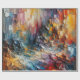 Vibrant colours blend in a dynamic abstract composition creating a sense of movement and depth