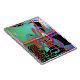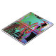 What can you see in this image? I see a net, a leaf, two tyres, two straight lines, beautiful colors and black holes. Can you see more?