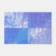An abstract design featuring scattered circular shapes in a turquoise and purple colour palette.