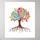 Abstract tree with roots and colourful leaves. Isolated on white background. Flat style.