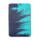 An abstract art design of illuminated woodland fir trees silhouetted against a black night sky.