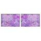 A camo-inspired pattern of multicolor patches in a pink, purple and blue palette.