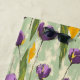 This artwork presents an abstract floral pattern featuring vibrant purple tulips with accents of yellow, set against a soft mint green background. Each tulip is uniquely painted with expressive brush strokes, giving a lively, impressionistic feel to the composition. Green leaves intersperse the tulips, enhancing the fresh and vibrant nature of the design. Perfect for spring-inspired decor or fashion designs, this pattern brings a cheerful and dynamic aesthetic to any space or product.