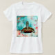 A hand drawn depiction of a turtle with an abstract background. Colours used: red, blue, teal, green, yellow, purple.