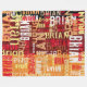 The dark-red and orange solid background forms the perfect canvas for the typography-inspired patterns. This rich backdrop enhances the contrast of the distressed fonts, creating a visually striking and balanced composition.
