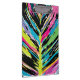 An abstract interpretation of a multicolor tropical leaf in a vibrant colour palette, in a vector art style.