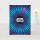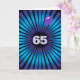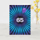 Purple, blue, and black vortex abstract design with purple balloon for 65th birthday.