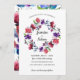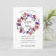 Modern and romantic this design features watercolor flowers and splotches in green, blue, burgundy, violet and pink over a classic white background.
