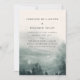 A dark forest green watercolor wash fades into soft texture on this moody, minimalist wedding invitation. A misty treeline anchors the bottom of the card, adding a quiet sense of romance and depth. Clean modern type in elegant small caps makes this perfect for outdoor weddings, mountain venues, or fall celebrations with a natural, elegant vibe.