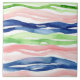 Abstract Watercolor Green Pink Blue Wave Stripes Tile