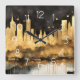 Abstract Watercolor Painting Gold Cityscape Square Wall Clock