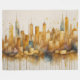 Abstract Watercolor Painting Gold Cityscape Purple Blue