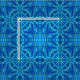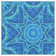 Fabric in a geometric, watercolor effect mandala pattern in shades of light to dark denim blue