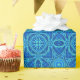 Wrapping paper in a geometric, watercolor effect mandala pattern in shades of light to dark denim blue