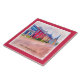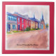 In a vibrant display of colour, a photograph of a row of houses is transformed into a painted abstract watercolor style ceramic tile. The reds burst with warmth, comfort and energy, while the blues bring a sense of calm and tranquillity. Splashes of yellow add a cheerful brightness that draws the eye. This urban scene invites smiles as it turns an ordinary row of homes into a cheerful work of art.