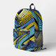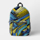This Abstract Waveform backpack features a captivating design chraacterised by flowing lines and sharp angles that create a sense of movement and rhythm. This geometric pattern combines vibrant colours like deep blue, yellow, and purple, evoking a dynamic energy that draws the eye. Perfect for those who embrace bold styles, the Abstract Waveform backpack is designed for both practicality and flair, making it an excellent choice for daily use or artistic outings. With ample space for essentials, it allows you to express your unique personality while staying organised and stylish.