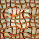 Abstract mesh pattern of intertwined wavy lines in gold, orange and black
