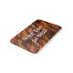 An orange, brown and black, angular fractal pattern resembling woven cloth. Add your own text.