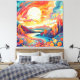 Abstract whimsical landscape with sunset. Illustration in cartoon style.