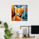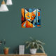Get this captivating Cubist-style illustration of a stunning orange cat painted in bold, squarish lines against a soothing backdrop of blue-grey hues. This rendering combines artistic innovation with feline elegance.
