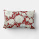 Abstract White Floral Ornament on Red Background Lumbar Cushion