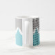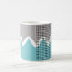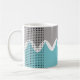 This mug has a geometric design made from two scalloped rectangles and a rectangle formed by rows of black dots. If you like the design but prefer different colours, message me.