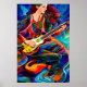 Abstract Woman Playing guitar colourful Music art poster