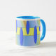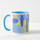 abstract mug design goes all the way around the cup in a pleasing pattern with a muted gradient behind the elliptical design