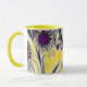 This colourful combo mug features an abstract swirly fractal in yellow, black and purple.