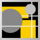 Yellow rectangles, gray circles, white lines, black background. #abstract