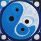 A modern depiction of yin yang in colours of blue and white against a backdrop of soothing circular geometric shapes, symbolising the balance of opposing energies in contemporary life.