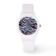 Elegant, stylish watch with abstract zebra print pattern in black, blue, violet and pink colours, made of my original acrylic painting.