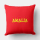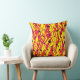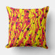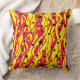 Throw pillow with chaotic colourful lines and stars, red and yellow shades