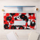 Desk mat with abstracted background white, black and red colours