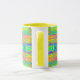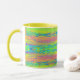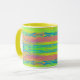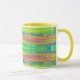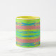 Coffee mug with abstracted bright background, horizontal colourful lines