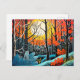 Abstraction in a Captivating Linocut forest winter Holiday Postcard