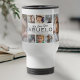 Cute personalised grandfather photo travel coffee mug featuring 8 family pictures, the words "we love you abuelo", and the kids names.
