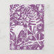 Pretty floral botanical silhouettes of nature, white foliage, leaves and flowers on a purple background.