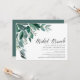 Chic bridal shower brunch invitation features lush green eucalyptus leaves and foliage, illustrated in watercolor. Personalise with your bridal brunch details aligned at the right. Cards reverse to solid forest green.
