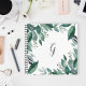 Chic botanical notebook features your single initial monogram in calligraphy script, surrounded by lush green watercolor foliage and eucalyptus leaves.
