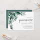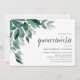 Chic botanical invitations for elegant quinceanera celebrations feature watercolor eucalyptus leaves and green foliage cascading from the upper left corner. Customise with your quinceanera details aligned at the right and embellished with chic calligraphy. Invitations reverse to solid forest green.