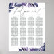 Wedding or event seating chart matches our Abundant Foliage Violet Botanical collection, featuring lush purple and blue watercolor botanical greenery and leaves framing your guest seating details. "Find your seat" appears at the top in chic calligraphy script.